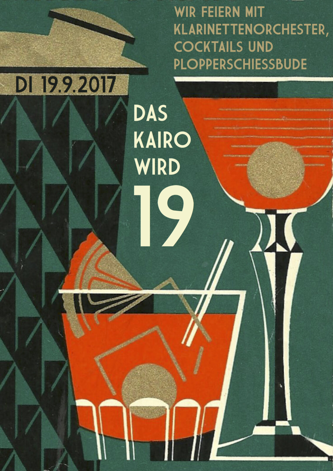 Das Café Kairo feiert seinen 19. Geburtstag! Zur Feier gibt es Erfrischungen an Maria Dolores’ Cocktail-Bar, eine Plopper-Schiessbude und vielleicht wieder mit Pet-Rakete. Und man höre und staune, es spielt auch noch ein Klarinettenorchester!