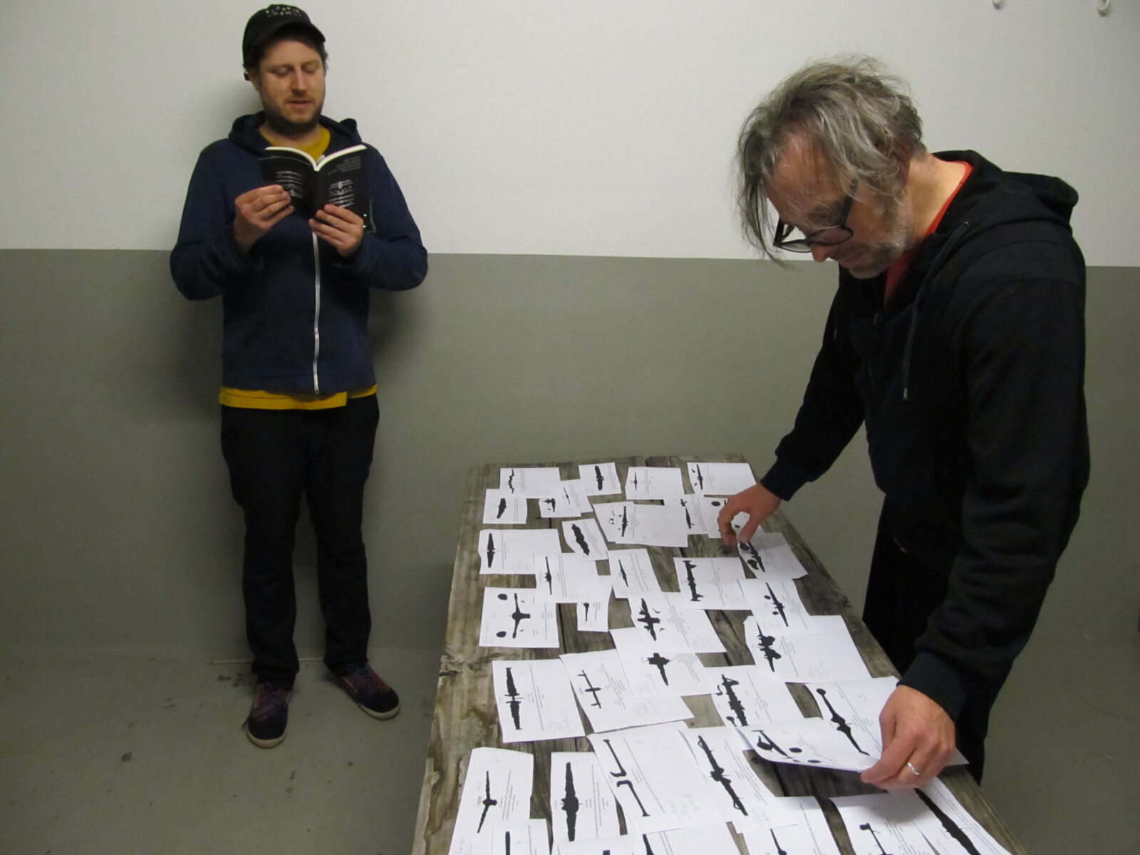 Der Bund formulierte salopp, Hartmut Abendschein habe während zweier Jahre jeden Tag gekleckert. Tatsächlich ist auf dieser Grundlage ein ominöses Buch entstanden. «nicht begonnenes fortsetzen» ist ein korpuspoetisches Projekt und beschäftigt sich u.a. mit der Poetik der Textkontur. Eine Textsammlung wurde in einen Dialog mit Klappdrucken gebracht, die deren Textumriss, aber auch Dichte bzw. Flächigkeit vorgeben. Das Verfahren ermöglicht es zudem, ursprünglich kleinere, unabhängige Einheiten miteinander in Verbindung zu bringen und zu grösseren, assoziativen Textgebilden bzw. metrisierten Erinnerungsgeweben zu verdichten. Die Arbeit sensibilisiert für die Ästhetik des Umrisses und ist ein eposartiges, fliessendes Textambiente an der Schnittstelle von Konzeptliteratur, Bildender Kunst und Konkreter Poesie. Dass man sie auch vorlesen kann, wird dieser Abend zeigen. Und Musik passt dazu auch.